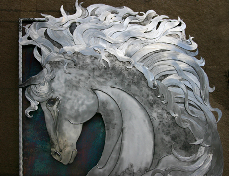 | Equestrian Gold | Silver Stallion | Leaping Stallion | Appaloosa Stallion | Stallion Wire Mane | Abstract Horse | Black Stallion | Arabian Attitude | Five Horse Rebar | Equestrian Romance | | Horses, Stallions & filly page | The Lion Page | The Egrets Page | Great Oaks page | Leaves of Copper page | Guitar Details Page | The Waves page | Individual display pages | Furniture Pieces | Lovely Ladies | Metal Gallery | Smaller Metal works | Wildlife Gallery | Installed Orders | Client Response | |