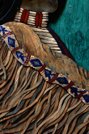 Closer look at the porcupine quill breastplate and red bead separations.